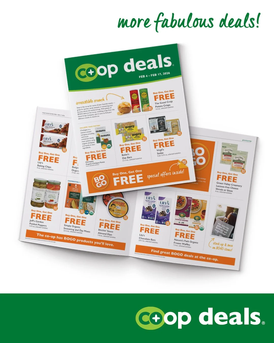 *Sale items are spread out over two two- or three-week promotional periods, monthly. Because Co+op Deals is a national promotions program for food co-ops who are members of National Co+op Grocers, not all products featured in the flyer will be available at all co-ops.